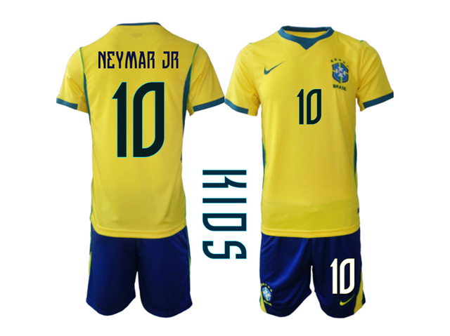 Brazil 2026 Youth Home Gold Soccer Jersey with #10 Neymar Jr. Printing