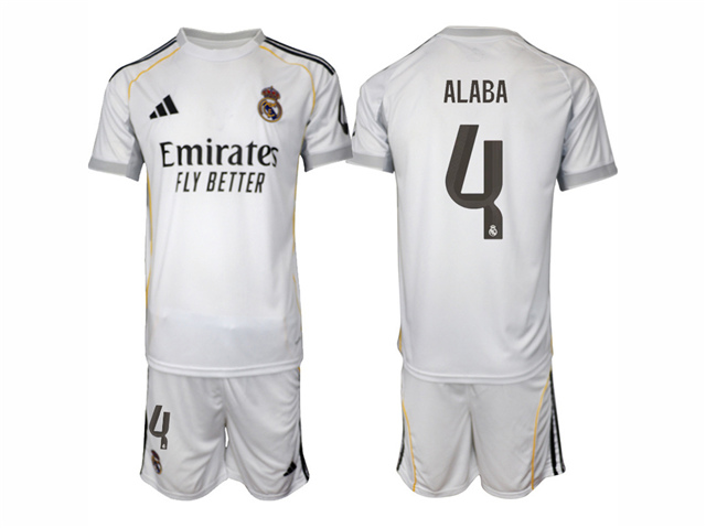 > Real Madrid CF 2025/26 Home White Soccer Jersey with #4 Alaba Printing