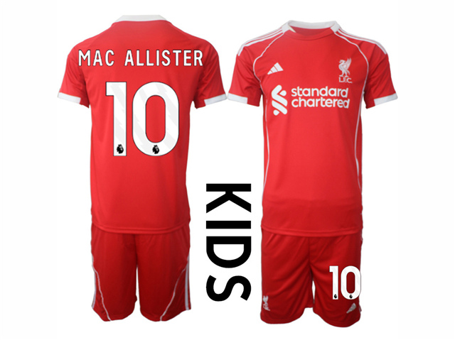> Liverpool F.C. 2025/26 Youth Home Red Soccer Jersey with #10 Mac Allister Printing