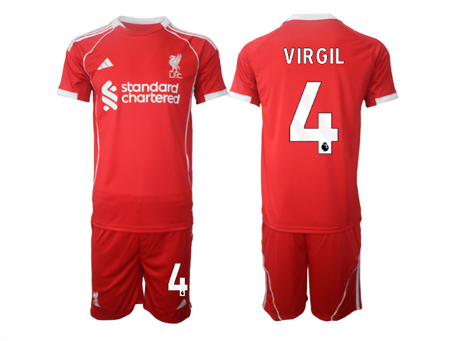> Liverpool F.C. 2025/26 Home Red Soccer Jersey with #4 Virgil Printing