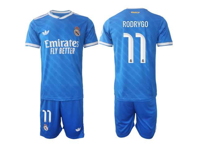 Real Madrid CF 2025/26 Third Blue Soccer Jersey with #11 Rodrygo Printing