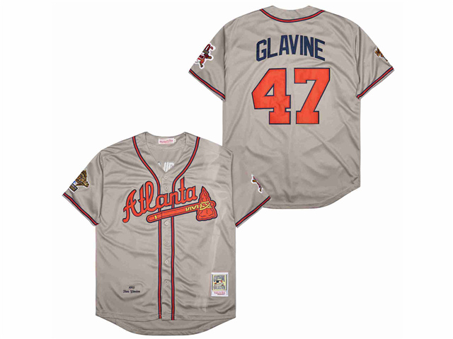 > Atlanta Braves #47 Tom Glavine 1995 Gray Throwback Jersey