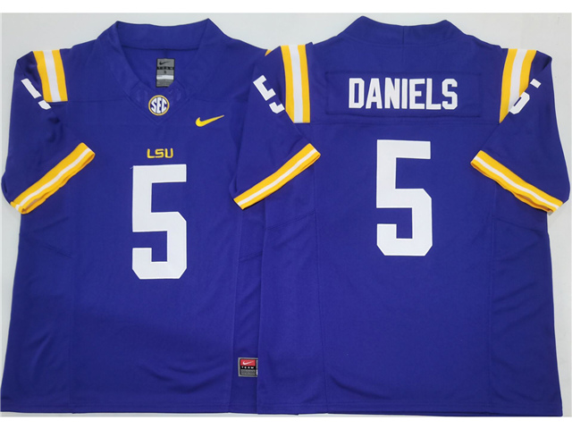 LSU Tigers #5 Jayden Daniels Purple College Football F.U.S.E. Limited Jersey