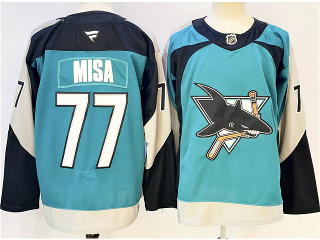 > San Jose Sharks #77 Michael Misa 2025-26 Throwback Teal Jersey