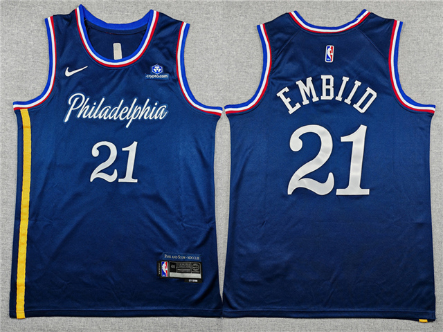 > Philadelphia 76ers #21 Joel Embiid 2025-26 Navy City Edition Swingman Jersey