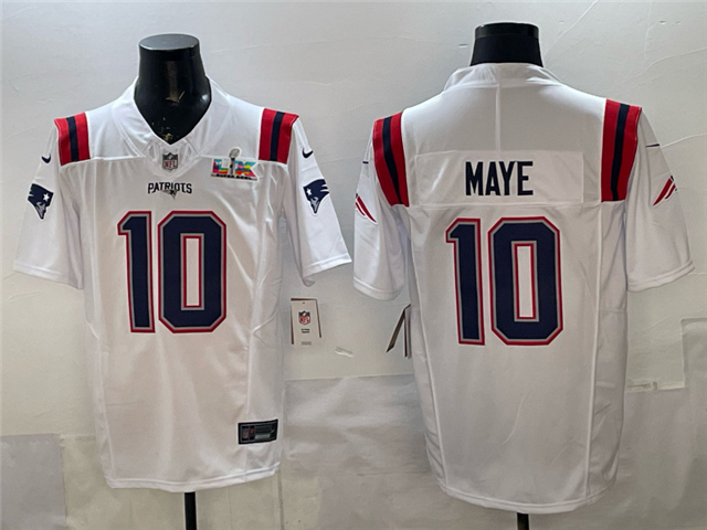 New England Patriots #10 Drake Maye White Super Bowl LX Limited Jersey