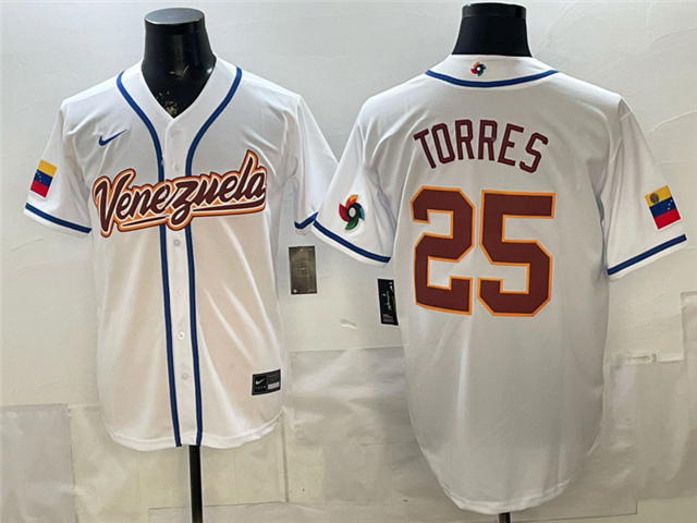 > Venezuela Baseball #25 Gleyber Torres White 2026 World Baseball Classic Jersey