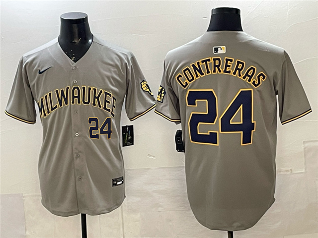 > Milwaukee Brewers #24 William Contreras Gray Limited Jersey