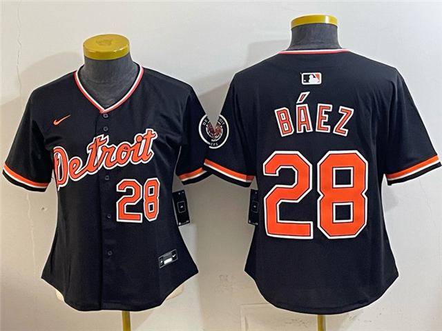 > Detroit Tigers #28 Javier Baez Women's Alternate Black Limited Jersey
