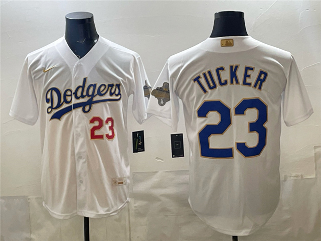 > Los Angeles Dodgers #23 Kyle Tucker White 2026 Gold Collection Jersey