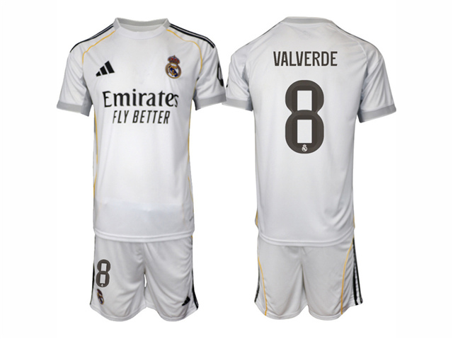 > Real Madrid CF 2025/26 Home White Soccer Jersey with #8 Valverde Printing