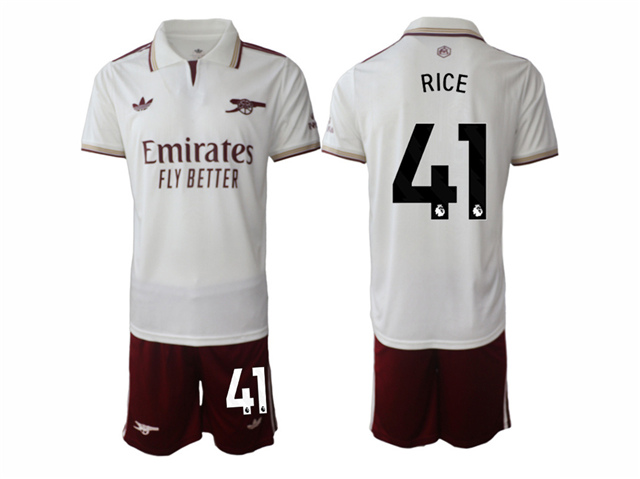 > Arsenal F.C. 2025/26 Third White Soccer Jersey with #41 Rice Printing