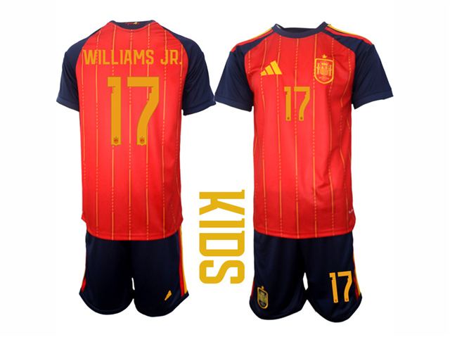 Spain 2026 Youth Home Red Soccer Jersey with #17 Williams Jr Printing