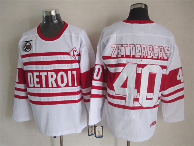 > Detroit Red Wings #40 Henrik Zetterberg CCM Vintage 75th White Jersey
