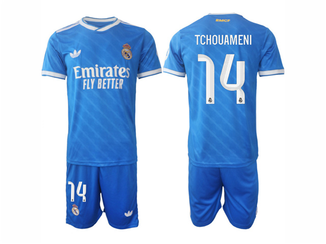 Real Madrid CF 2025/26 Third Blue Soccer Jersey with #14 Tchouameni Printing