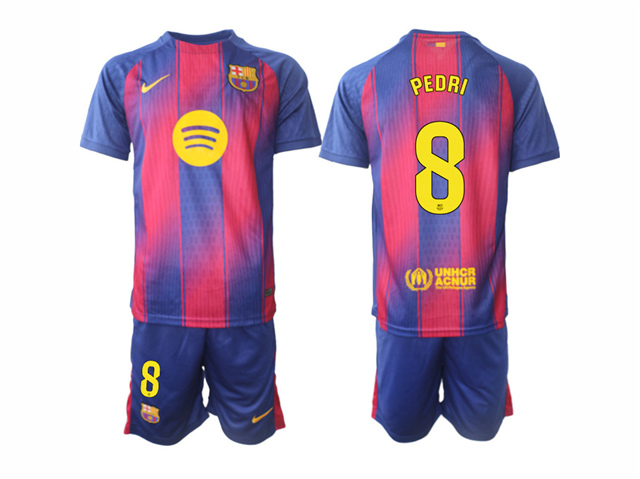 FC Barcelona 2025/26 Home Red/Blue Soccer Jersey with #8 Pedri Printing
