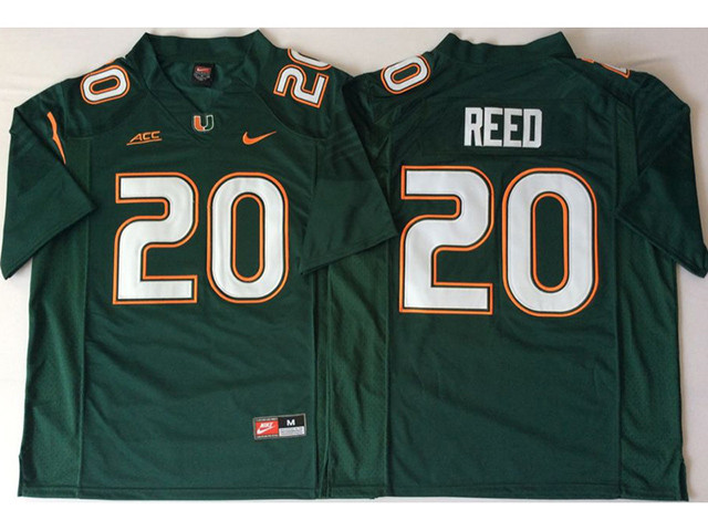 > Miami Hurricanes #20 Ed Reed Green College Football Jersey
