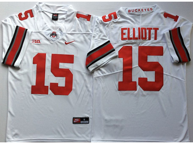 > Ohio State Buckeyes #15 Ezekiel Elliott White College Football Jersey
