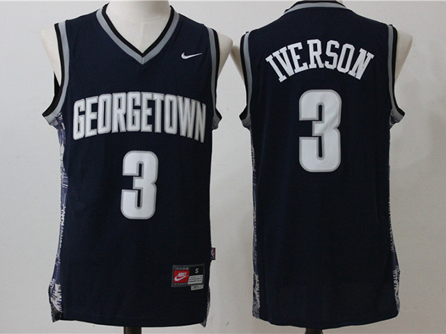 > Georgetown Hoyas #3 Allen Iverson Navy College Basketball Jersey