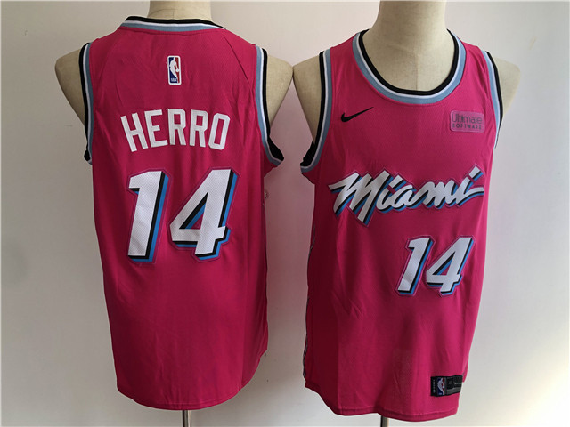> Miami Heat #14 Tyler Herro Pink Earned Edition Swingman Jersey