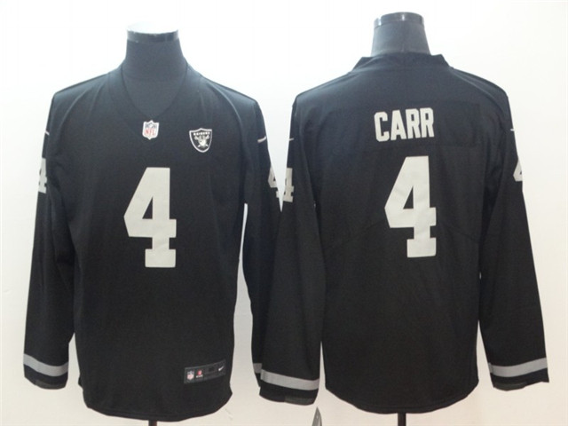 Las Vegas Raiders #4 Derek Carr Black Therma Long Sleeve Jersey