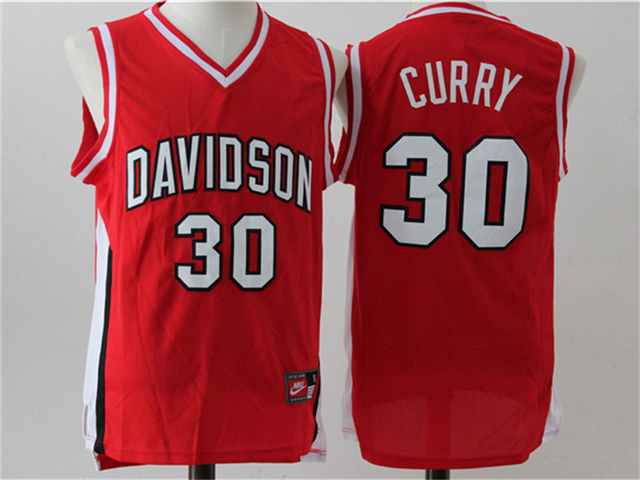 > Davidson Wildcats #30 Steph Curry Red College Basketball Jersey