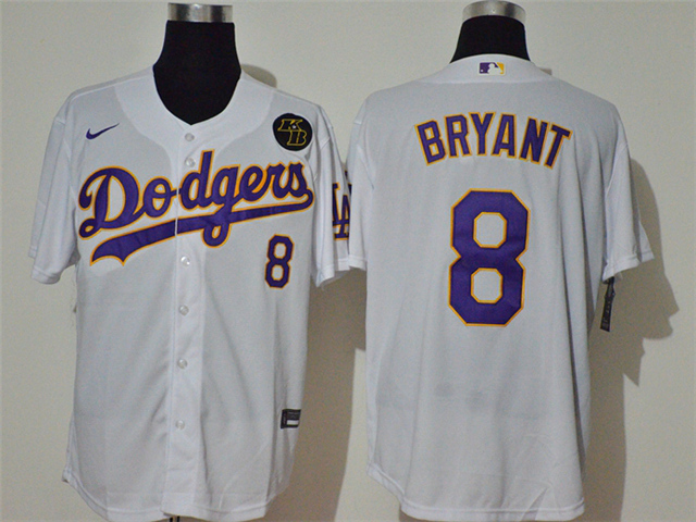 > Los Angeles Dodgers #8 Kobe Bryant White/Purple KB Cool Base Jersey