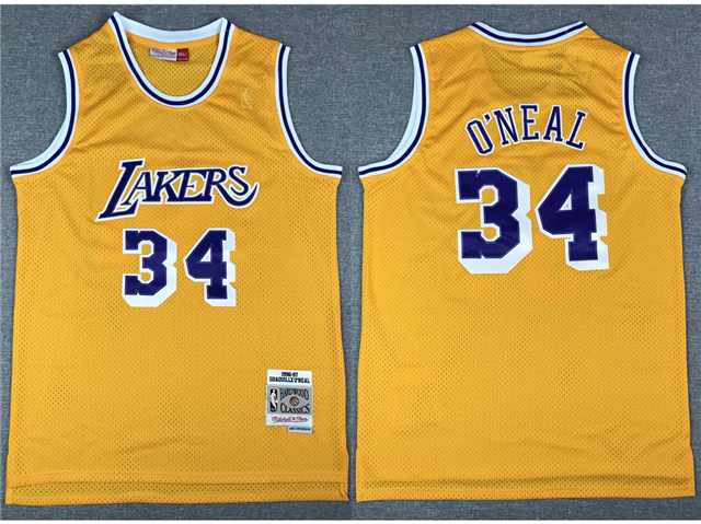 > Los Angeles Lakers #34 Shaquille O'Neal 1996-97 Gold Hardwood Classics Jersey