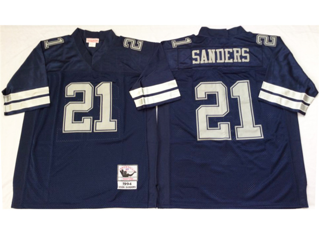 > Dallas Cowboys #21 Deion Sanders 1994 Throwback Navy Blue Jersey