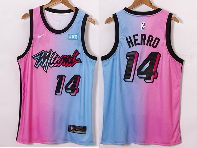 > Miami Heat #14 Tyler Herro 2020-21 Pink/Blue City Edition Swingman Jersey