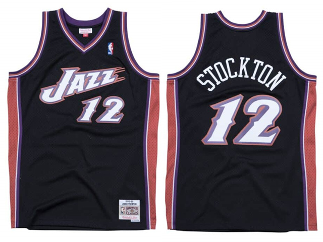 > Utah Jazz #12 John Stockton 1998-99 Black Hardwood Classics Jersey