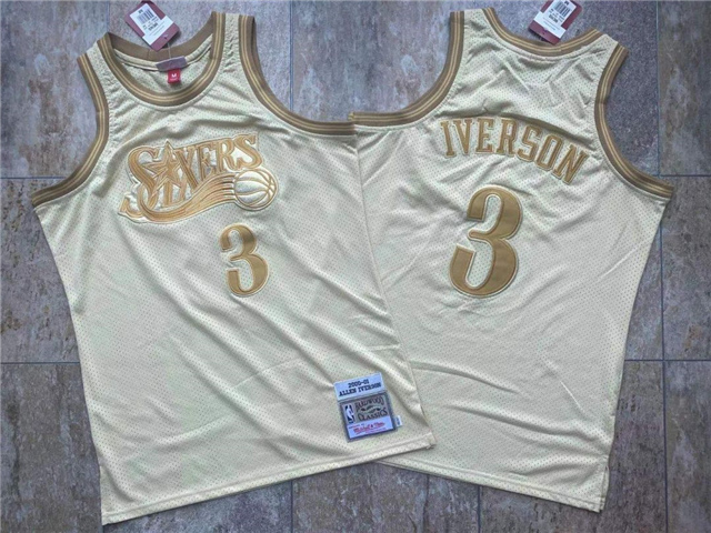 > Philadelphia 76ers #3 Allen Iverson 2000-01 Gold Hardwood Classics Jersey