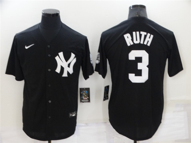 > New York Yankees #3 Babe Ruth Black Fashion Cool Base Jersey