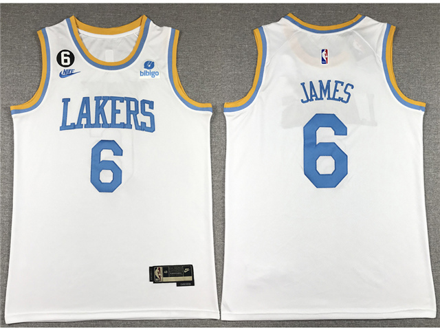 > Los Angeles Lakers #6 Lebron James 2022-23 White Classic Swingman Jersey