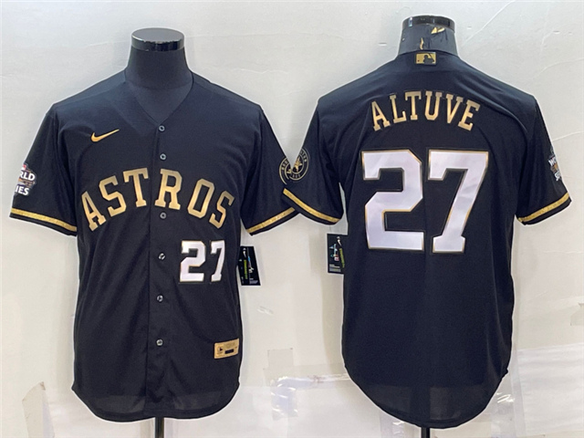 Houston Astros #35 Justin Verlander Black Gold w/World Series Patch Jersey