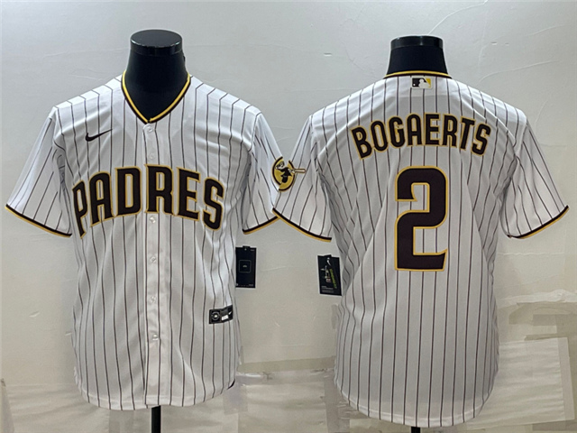 > San Diego Padres #2 Xander Bogaerts White Pinstripe Cool Base Jersey