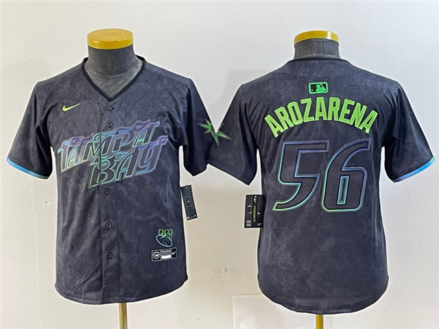 > Tampa Bay Rays #56 Randy Arozarena Youth Charcoal 2024 City Connect Limited Jersey