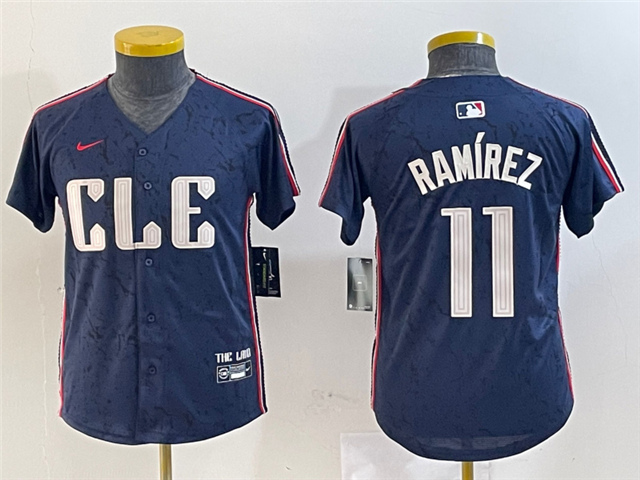 > Cleveland Guardians #11 Jose Ramirez Youth Navy 2024 City Connect Limited Jersey