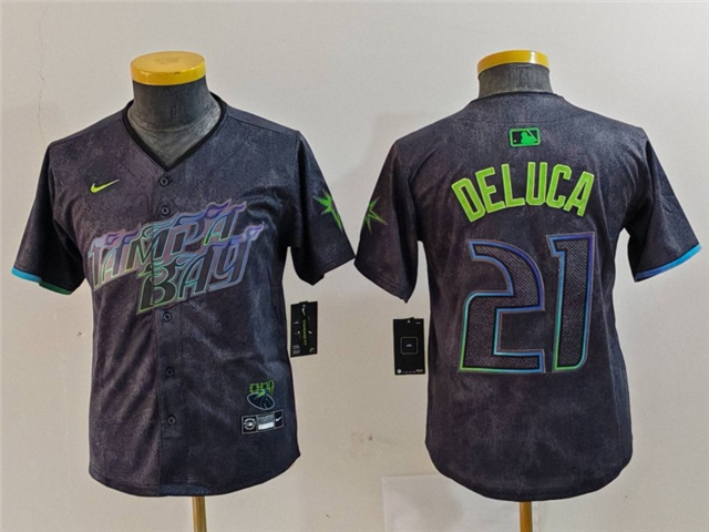 > Tampa Bay Rays #21 Jonny DeLuca Youth Charcoal 2024 City Connect Limited Jersey