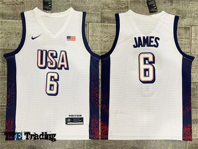 2024 Olympic Team USA #6 Lebron James White Basketball Jersey