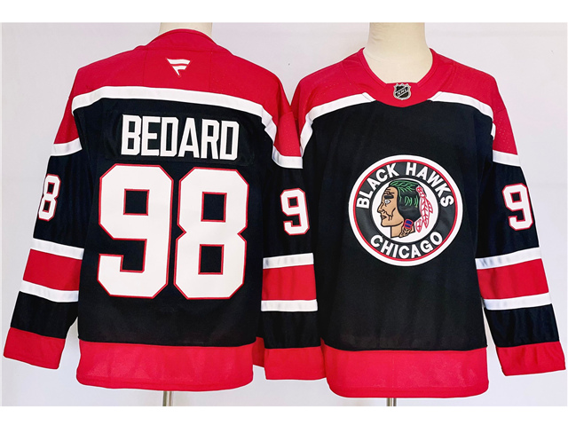 Chicago Blackhawks #98 Connor Bedard Black Reverse Retro Jersey