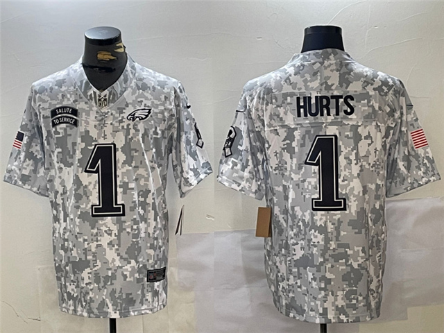 Philadelphia Eagles #1 Jalen Hurts Arctic Camo 2024 Salute To Service Limited Jersey