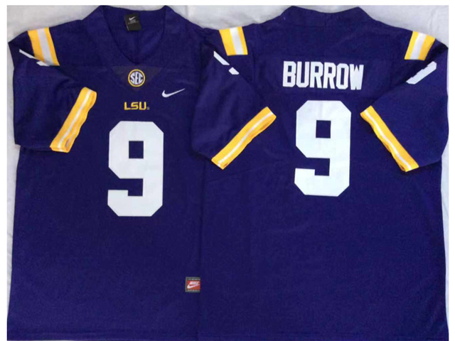 > LSU Tigers #9 Joe Burrow Purple College Football Jersey