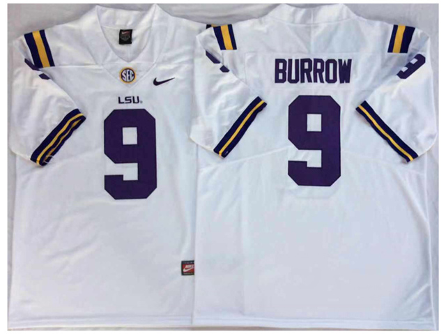 > LSU Tigers #9 Joe Burrow White College Football Jersey