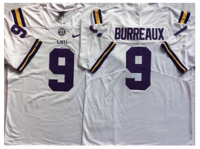 > LSU Tigers #9 Joe Burrow "Burreaux" White College Football Jersey