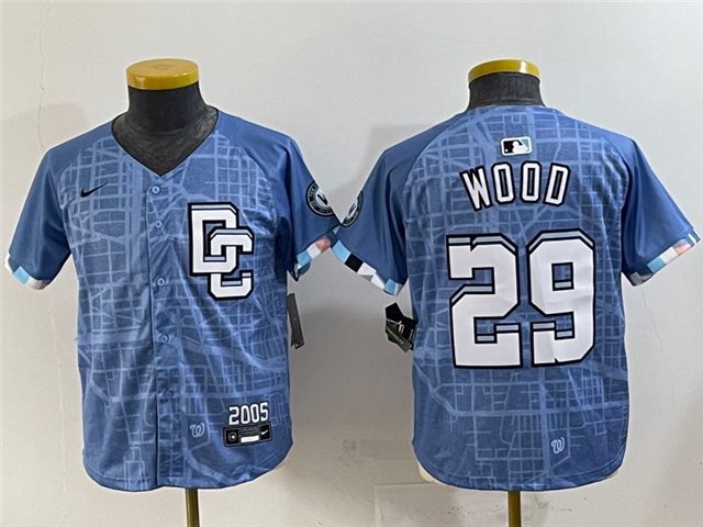 > Washington Nationals #29 James Wood Youth 2025 Blue City Connect Limited Jersey