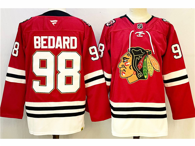 > Chicago Blackhawks #98 Connor Bedard 2025 Red 100th Anniversary Jersey