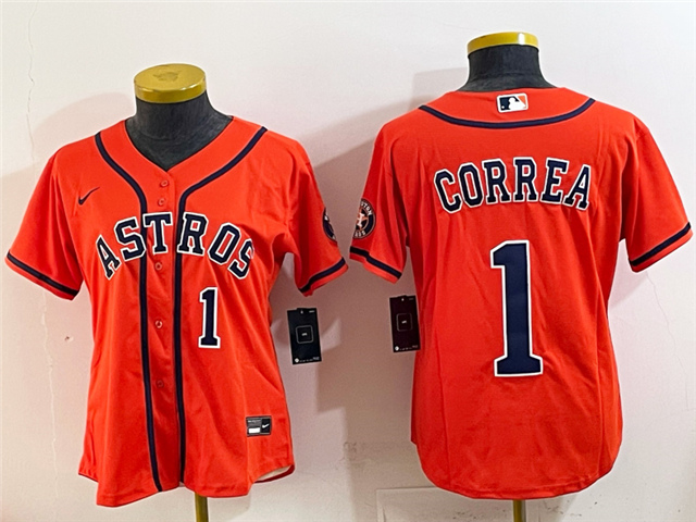 > Houston Astros #1 Carlos Correa Women's Orange Limited Jersey