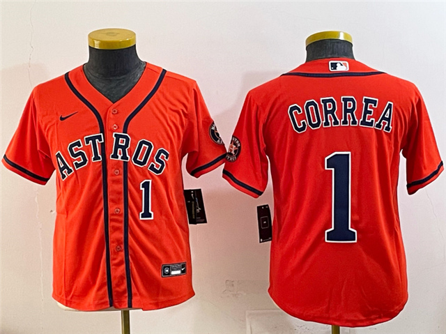 Houston Astros #1 Carlos Correa Youth Orange Limited Jersey