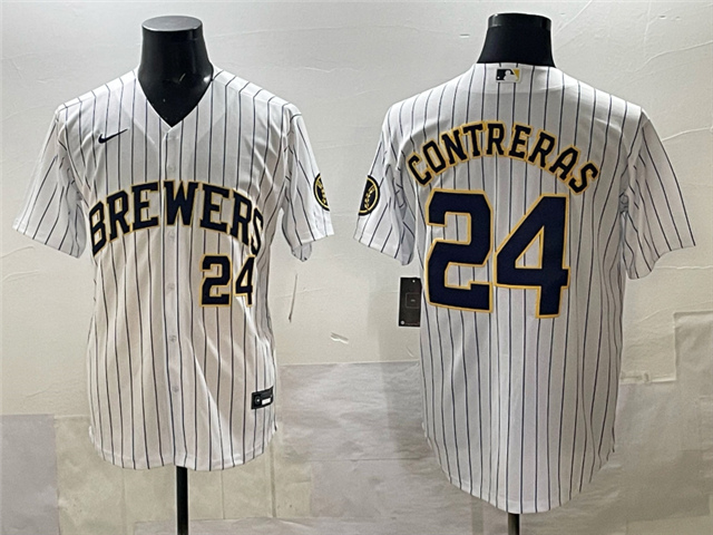 > Milwaukee Brewers #24 William Contreras White Limited Jersey